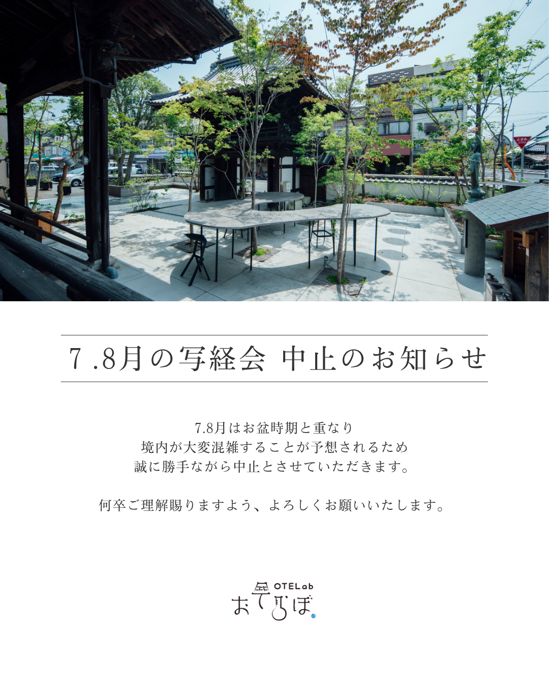 7月・8月の「写経会」中止のお知らせ
